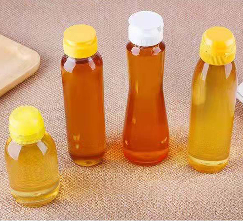 Botella de plástico para Miel de 180g y 500g, tarro para mascotas, botella de Ketchup para batidos, jugo, contenedor de embalaje de miel, botella de salsa para apretar, almacenamiento